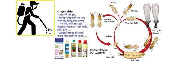 không cần khoan tìm tổ, không gây ô nhiễm môi trường, không ảnh hưởng đến sinh hoạt và hoạt động của công trình. - Phòng chống mối bằng thuốc hóa chất chuyên dụng kết hợp lưới thép không gỉ, đảm bảo